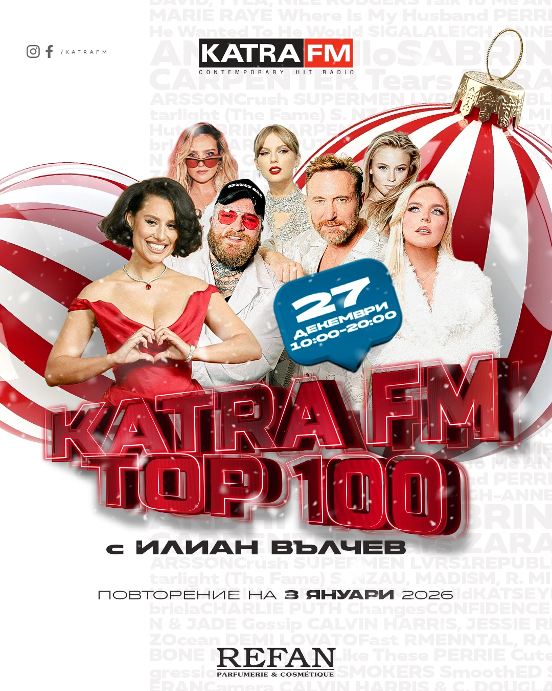На 27 декември 2025 г. точно в 10:00 часа, в ефира на KATRA FM започва най-очакваното годишно музикално събитие – годишната класация KATRA FM TOP 100. Традиционно излъчвана в последната събота на декември, тя събира в цели 10 часа ефир най-големите, най-слушаните и най-влиятелните песни, оставили отпечатък в България и Европа.